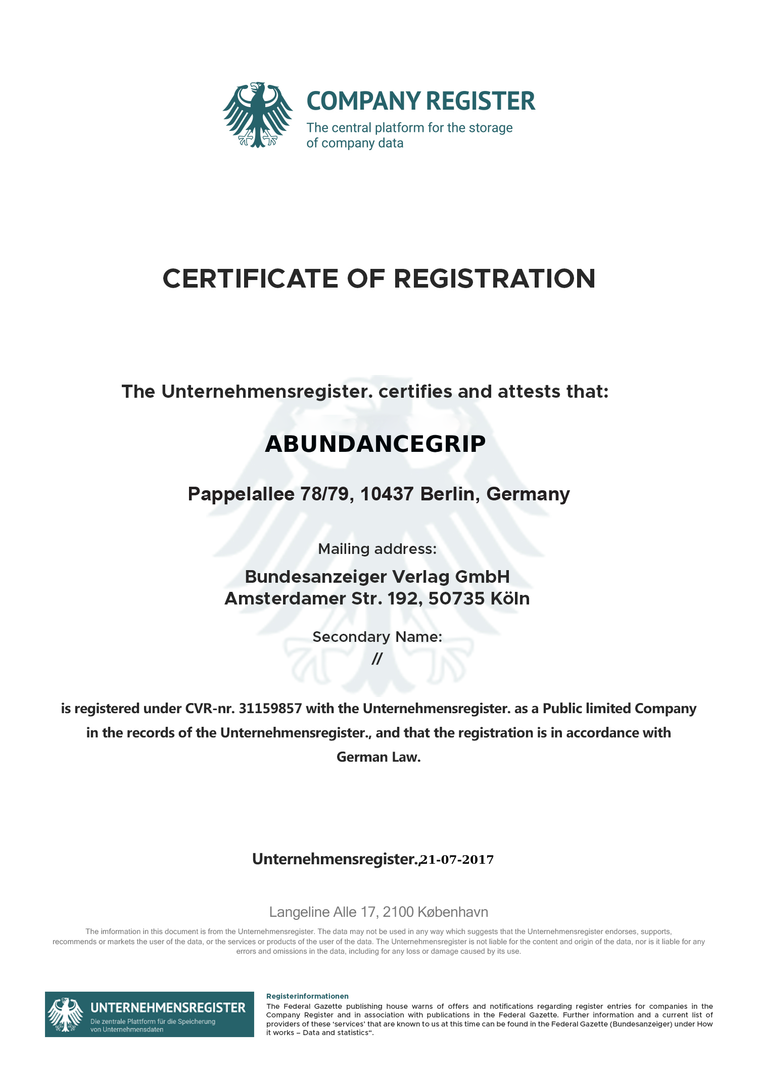 In Abundance Grip, we give certificate of membership to our new investors after the completion of their first round of investment. Which is a sign of our integrity, acknowledgement and to certify their membership.